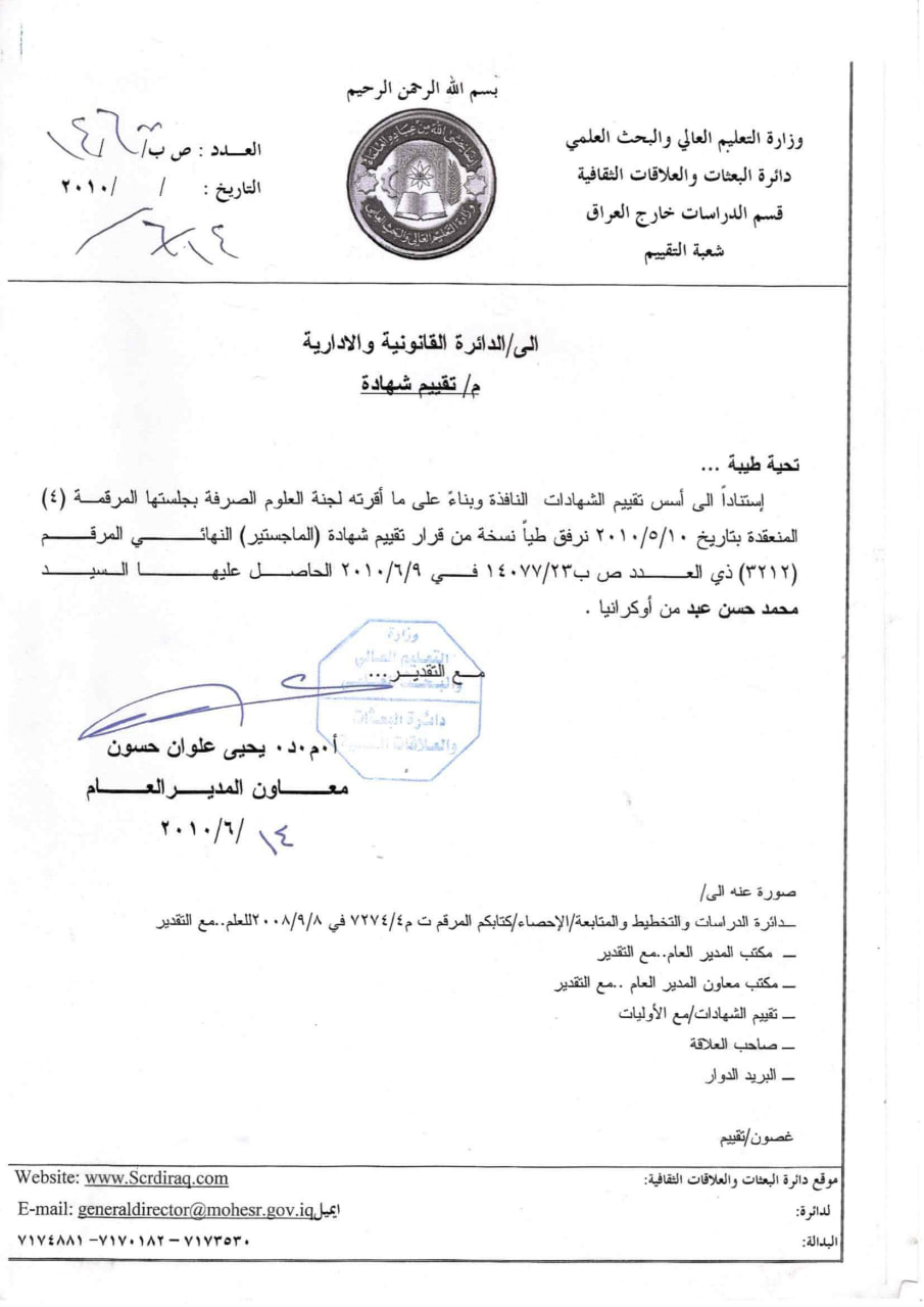 - مسؤول شعبة البعثات والعلاقات الثقافية في كليةعلوم الحاسوب جامعة واسط -2015-2016